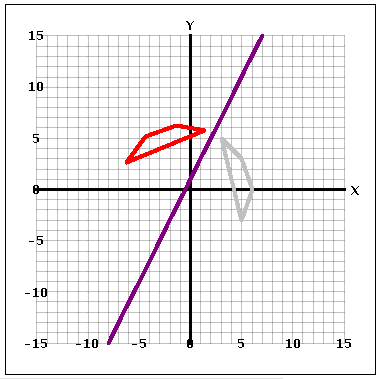 where m is the slope and b is the y-intercept. For example, a polygon reflected across the line y = 2 * x + 1 looks like this: