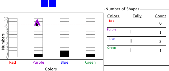 This activity allows the user to sort shapes into a bar graph by shape or color. There are two modes. The Random Set mode gives you a set of 6-15 random shapes to sort into a bar graph, or the Make Your Own mode which allows you to build your own bar graph by sorting shapes into the graph.