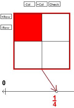 After all three boxes are correctly colored, the student must enter the value of the fraction which they created. Giving the exact value of the fraction serves to reinforce the relationship between the area colored and the exact value of the fraction.