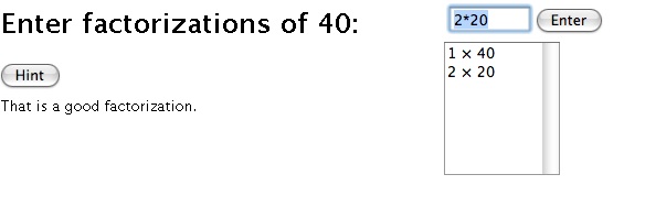 Now begin entering the factorizations in the in the box located to the left of the enter