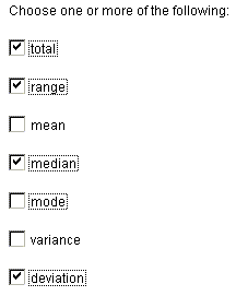 Before leaving this page you may choose the statistical information that you would like the program to calculate for you. You may choose more than one by clicking on the box to the left of each option. You must choose at least one option to proceed.
