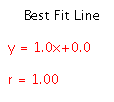 The equation and correlation, r, are calculated for the red best fit line to determine how