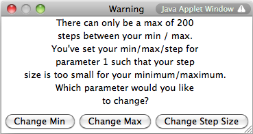 appears asking you to readjust by changing the slider min, slider max, or step size.