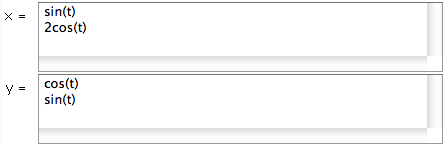 equation for x and y in the text boxes next to