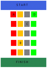 - Click Automatically Run to run the game many times. The computer will run the game for as many times as you indicate in the space next to the Automatically Run button, and display a Results Screen with statistics on how many races each player won. From this screen you can click Return to Race to go back to the Race Screen or click on Change Rules to go back to the Rules Screen.