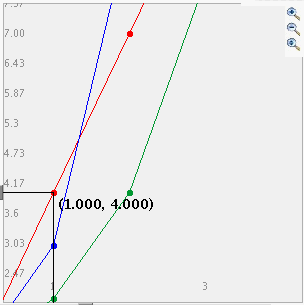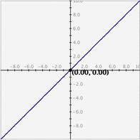 To navigate the graph use the slider bars on the bottom and left side of the graph. Click on the central rectangle and drag across. For the slider bar on the bottom drag left and right, for the one on the left side drag up and down. Notice that both slider bars move and they attach to the point closest to the slider bar. The value that appears on the screen is that of the point to which the slider bar is currently attached.