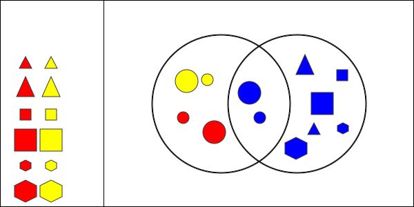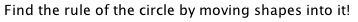 - Begin by attempting to click and drag different colored shapes into the circle(s). Try to guess the rule for the circle(s) based on which shapes and colors the circle(s) accepts or rejects.
