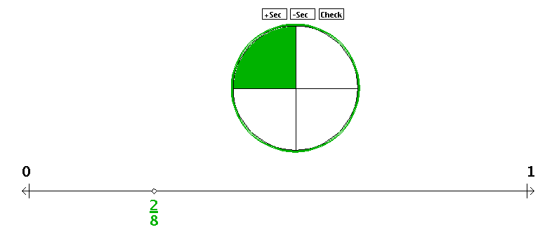 - For each fraction, you should make the colored part of the diagram equal to the corresponding fraction on the number line. Then click the Check button for each diagram to check your answer. If the diagram is correct, the word "Correct" will be printed on top of the diagram; if it isn't correct, the word "Incorrect" will be printed instead. If your answer is incorrect, you can try again.