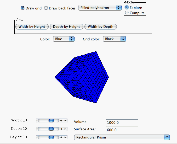 rectangular polyhedron. This allows the user to see what effect altering width, depth,