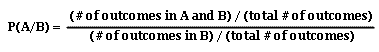 In other words, if we divide the probability of A and B happening at the same time by the probability of B, we get the conditional probability P(A/B). In the language of formulas, it means: