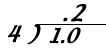 Student: Well since one is smaller than 4, I need to place a decimal after the 1 and add a zero and bring the decimal straight above the division symbol, like so: