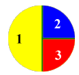 Mentor: So you would randomly choose some sand and find the probability of finding gold in it. Let us see if probability can help us measure the angles on spinners. If you do not have a protractor, how can you use the probability to estimate the yellow, blue and red angles on this spinner?