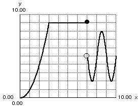 Mentor: That's right. It is up on the flat part at x=7, but for x larger than 7 it is on the curvy part. That colored in dot tells us that at 7 we should use the y-value 9, the dot with no shading tells us that the curvy part of the graph is what to use for anything larger than x = 7, but not for 7 itself. We call this a piecewise graph, and when we have this situation, we need to be told where the open and closed (filled or not) circles are.