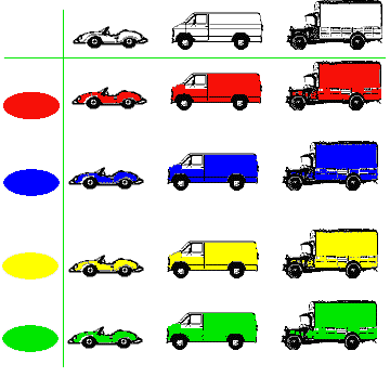 Student 1: Say, if you want to choose between a sports car, a van, and a truck, and they can be of four colors, then you'll have 12 possible combinations.